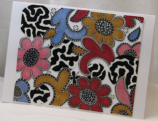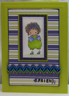 Sassy Cheryl's colored using Copics and highlighted with Stickles. I printed her on vanilla cardstock because I wanted to try to get her dress colored in white - I used a white colored pencil - it is difficult to see on the photo. I'm on the hunt for Sharpie Poster Paints - need a white fine tip according to a very informative how-to-highlight tutorial video I watched. It does have some depth to it IRL (I.R.L. = in real life) (for my texting/chat deficient sisters).