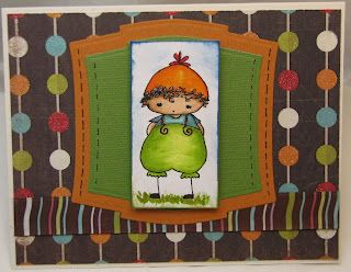 Nana's Kids~Layer of purple edge punched cardstock, layer of yellow cardstock, layer of zig-zag trim (gift from Sista Gail - thank you)
