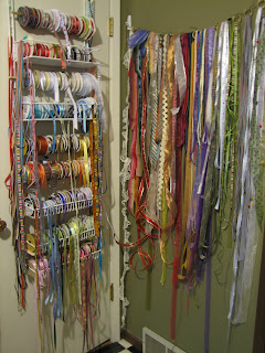 Hot Pink Gingham~Vertical layer of hot pink cardstock topped with layer of polka dot ribbon - with additional ribbons