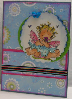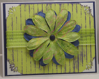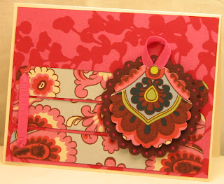 ~Layer of REALLY YUMMY design paper - K & Co Jubilee Bright Flowers I knew the second I saw this design paper that it would be PERFECT for the thistles that awaited me at home. (I was with my dear husband - at Archiver's on Saturday - he said, "what are you going to do with THAT?" I said, "you see this lavender/purple/gray-green corner?" "I need it for a card". His facial expression was - "what makes those neurons fire in that head of yours", he vocalized, "so you are buying that 12" x 12" sheet of paper (REALLY????!!!! HOW DARE he call it a SHEET OF PAPER) because you need just that 4" x 5" corner?" I replied, "Step aside, you're in the light." And YES my husband went in to Archiver's with me - his maiden voyage! He was very well behaved. I left him in the equivalent of the 'tool aisle' (punches, scissors, die cuts and machines) and went merrily on my way.