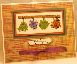 ~Image colored with Copics: V17, V04, YG11, C-3, C-1, G000, YG63, and RV24. I really tried to keep the green to its true gray-green color. Then I topped the prickly little tops with two purple shades of Flower Soft. (These too were an intentional - one card specific purchase - I knew when I saw the images I HAD to use purple Flower Soft! The edge of the cardstock is smudged with Memento London Fog and then adhered to a single layer of purple mulberry paper (again - think prickly...)