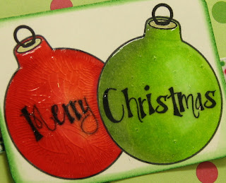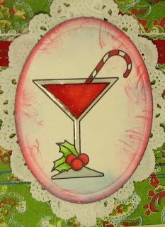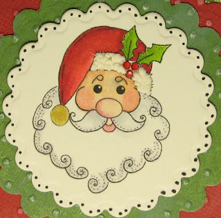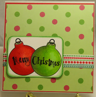 Wendymade & All Things Crafty (I had to look up the word culchie which she uses to describe herself - I read that word every time I clicked into her blog and finally gave up my obtusity and decided to educated myself). Image printed on Paper Temptress Cryogen White (the coolest cardstock EVER for printing and stamping). Copics used to color, edge of cardstock smudged with Stampabilities Kelly Green ink, red ornament topped with Ranger Inkssentials