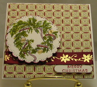 Daughter Amy's closest friend Jennie sent me a text message asking if I would make her 5 Christmas cards. I texted her (just what is the past tense of text??? why am I using a noun as a verb????) back in the affirmative. I decided to try out the square card in a rectangle envelope on Jennie. I used pretty much the same layout on all of the cards. Here is the result.