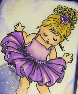 ~Layer of dark purple cardstock to frame the image which is printed on Paper Temptress Cryogen Iridescent, edges smudged with inks, using Whoopsi Daisy Designs colored with Copics and highlighted with Stickles Purple