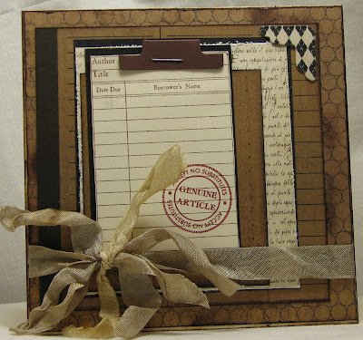 This card is for Sara, the research librarian, on campus. We have bonded over our love of books - the weight in your hand...the smell of the pulp...the cracking of the spine when you're lucky enough to be the first to read it... and our contrasting love of technology and e-books. And we both like 'really, really NICE paper! Since she is a paper 'freak', like me, I thought I would make her a set of cards. This is the first one.