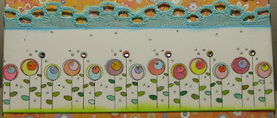 ~Free digital image from Just Some Lines colored with Copics, highlighted with Stickles Diamond, tallest flowers dotted with rhinestones, bottom of cardstock smudged with lime green ink, top of white cardstock smudged with blue ink