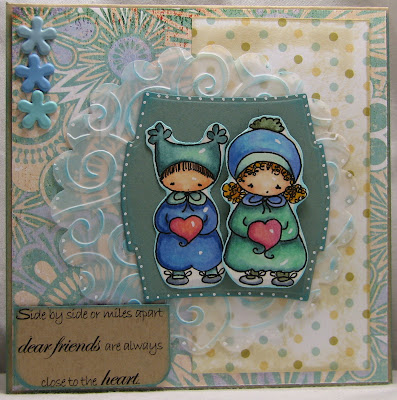 ~Sentiment printed on Kraft - edges smudged with Color Box Fluid Chalk Blue Lagoon, bottom Kraft curved using punch (thought it mirrored the puffy bottoms of their snow suits).