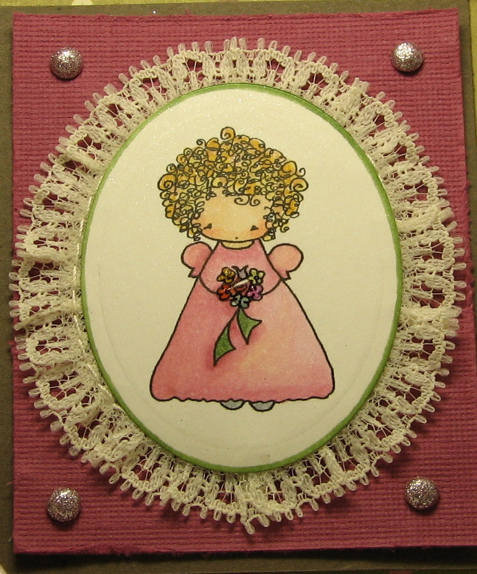 ~Baby Bud Designs image printed on PaperTrey Ink Vintage Cream colored with Copics, flowers highlighted with Stampin' Up Crystal Effects