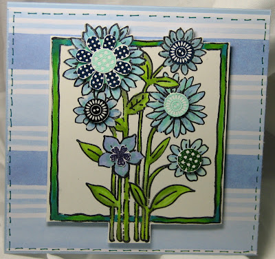 ~Image colored with Copics, flower centers stamped with Taylored Expressions Friendship Blooms using Versamark and embossing powders: Cobalt Blue, Wintergreen Pastel (from my "what was I thinking when I bought this" collection, Eggplant, and Evergreen