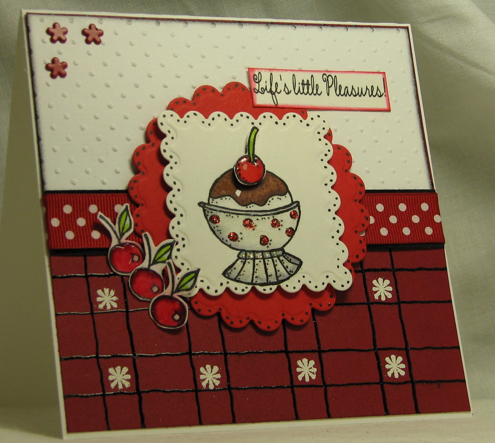 I should have made a card about support or one with a bra in keeping with the talking points of today's blog. However as I got ready to upload this photo - I realize this card may be on topic after all and I may never look at TWO SCOOPS of ice cream without remembering the 'day of the bras' conversation.