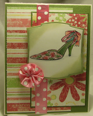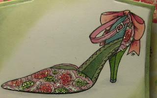 And now for a card. The shoe was part of a card from niece Linda. I couldn't NOT use the beaded shoe - so consider it re-purposed!