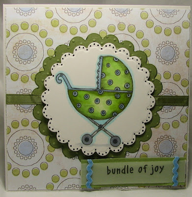 ~Scallop circle by Spellbinders using Cuttlebug; framed layer of Bazzill Herbal Garden embossed using Cuttlebug Swiss Dots; black dots added using black Sharpie fine point
