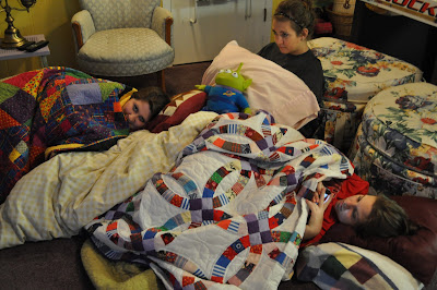 This should be fun...my family room has no furniture (long story)...(but they're kids...right?...they are used to sharing an 10' x 11' DORM room...PLUS my air conditioning is not working which they are ALSO used to as their dorms are not air conditioned...barbaric isn't it!).