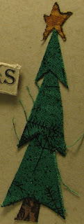 ~Star - free form cut - layer of Bazzill Pickle textured cardstock with three layers of fabrics from the scrap basket - all stitched together leaving the tails of gold thread