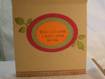 ~Sentiment stamped on oval die cut Kraft cardstock - edges dotted with black Sharpie