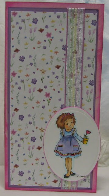 Here is card number three of the wee Colleens for my cousin Maura. She has three daughters Sheila, Sonja, and Anne. She will have her next St. Patrick's Day cards ready especially early! (Or I can just admit to thinking about making these especially late!)