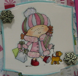 ~Image printed on Cryogen White from Papertemptress colored with Copics, fur highlighted with Fairy Dust Blue Diamond Dust and Pinkie, boots highlighted with Stampin' Up Crystal Effects