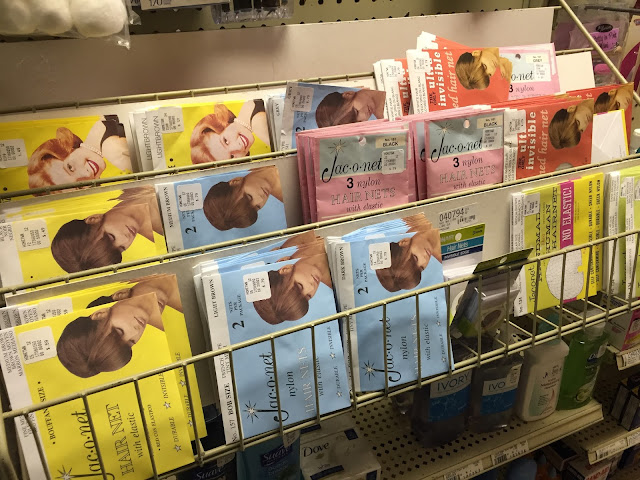 How many hair nets can one town POSSIBLY need!? There were TWO racks of these! HAIRNETS!? I didn't know they came in color/size choices!